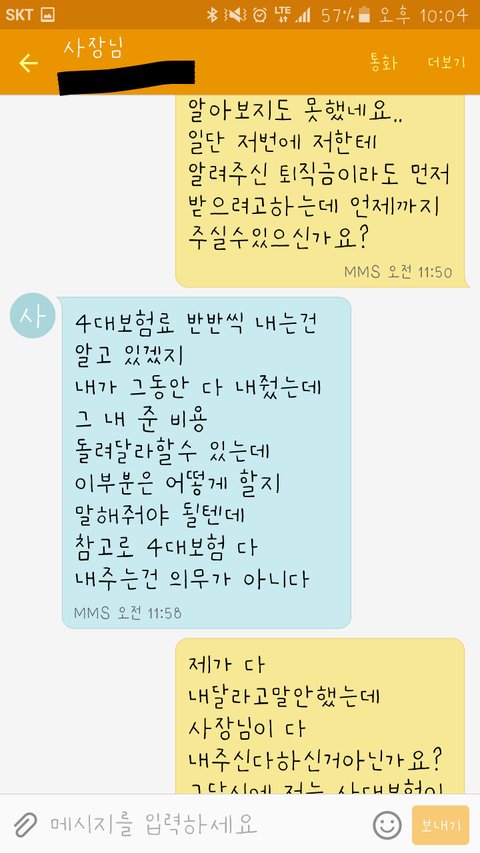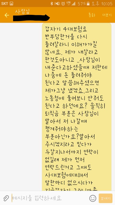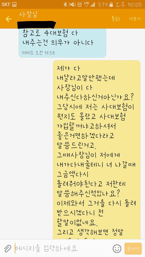 너 사대보험 반 부담한거 다시 돌려줘야한다고