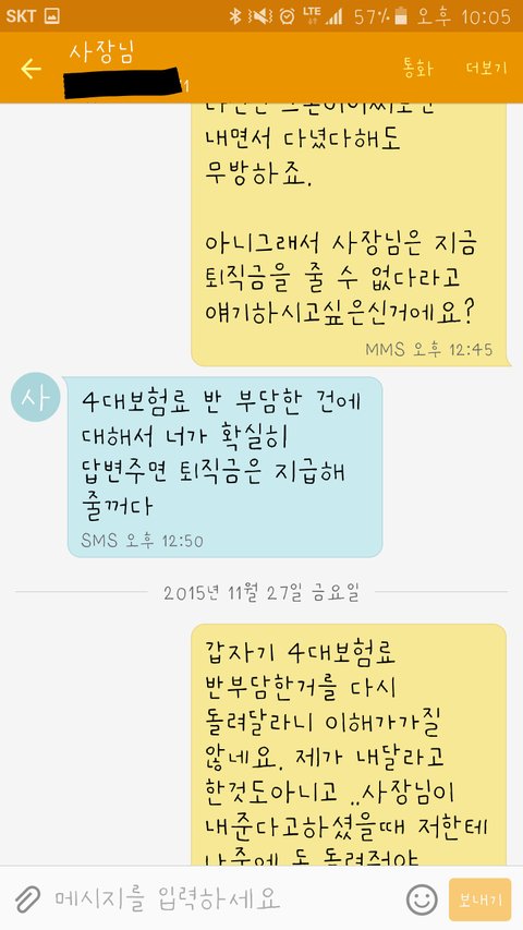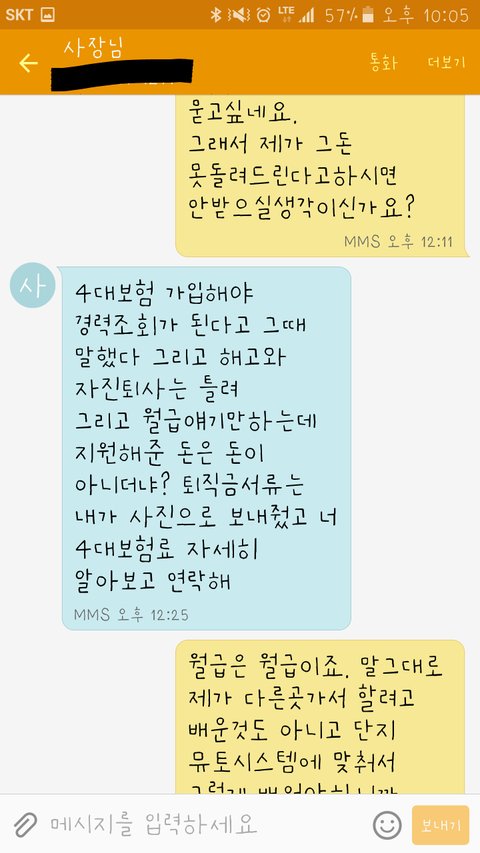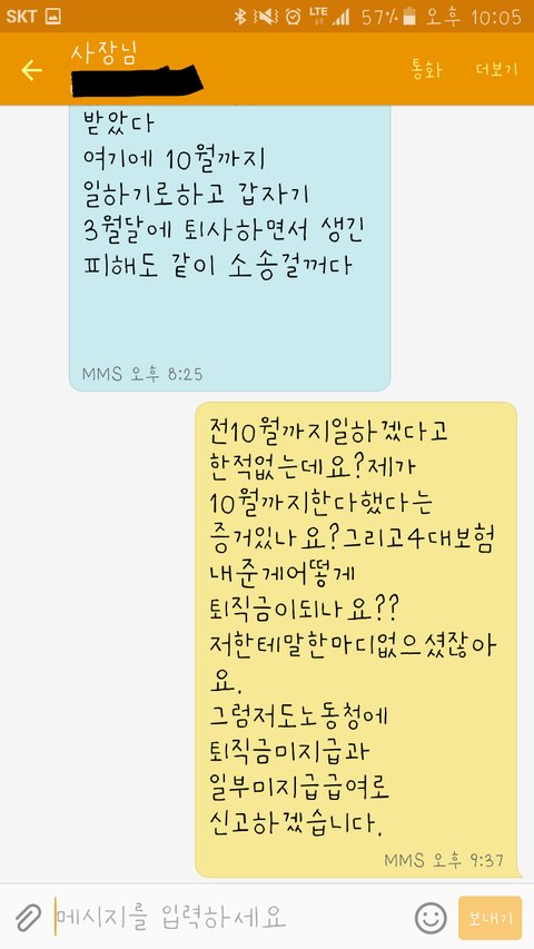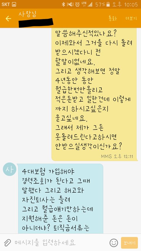 심지어 제가 노동청에 진정서 냈을때도 그 사장 엄마한테 톡왔어요