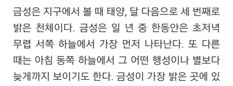 금성=태양(EXO-L)과 달을 제외한 태양계 중 가장 밝은 행성.