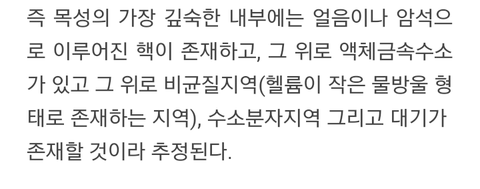 목성이랑 시우민이랑 무슨 상관인가 싶지? 결빙은 얼음을 만들 수 있고, 사진 보면 목성의 깊숙한 내부에는 얼음도 있다고 나와있어. (찾아봐야 알거같은데 아마 태양계 중 유일하게 내부에 얼음이 있다거나 그런거 아닐까)