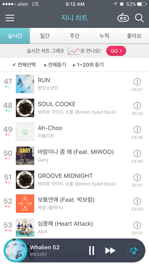 우리 타이틀 RUN만 순위에 간신히 걸쳐있고