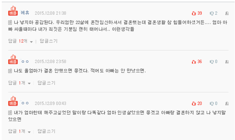 첫 번째 베플년은 지 어미가 혼전임신 했다고 말하는데,