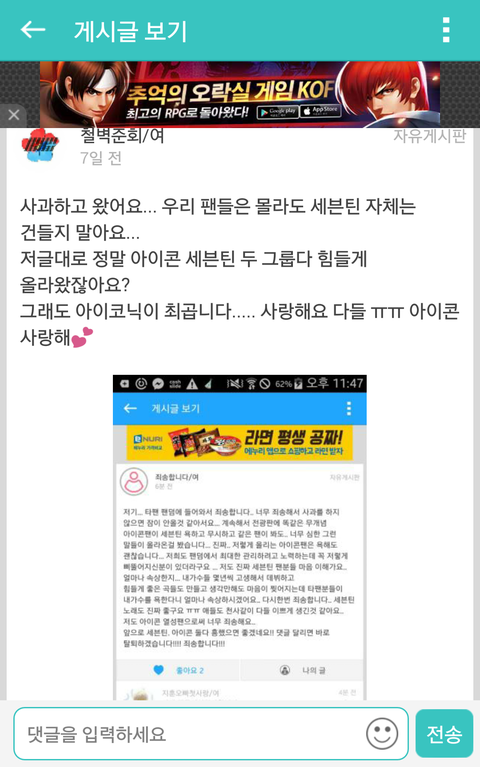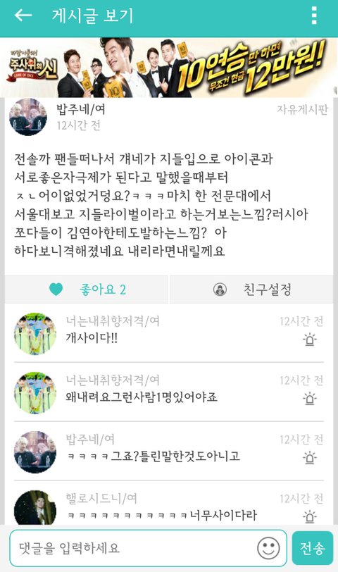 제가 쓴글은 무작정 아이콘 비방하고 끌어내리는글이아니고 무개념글을 작성한사람들한테만말하는거예요