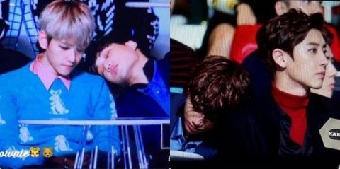 마마때 찬열한테 기대서 잔 사진은 해명움짤 없네
