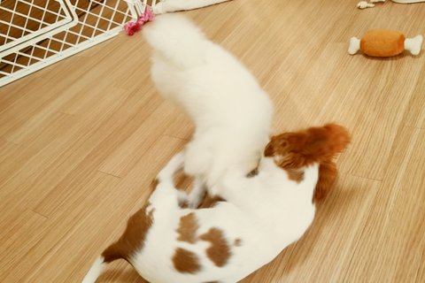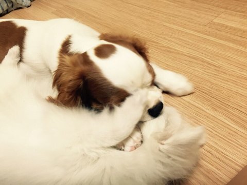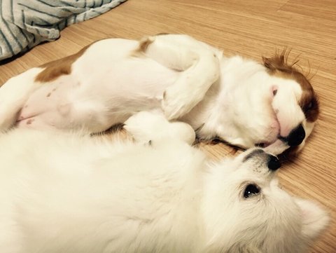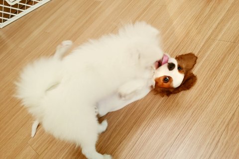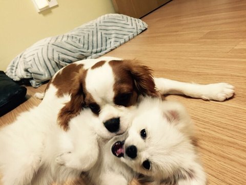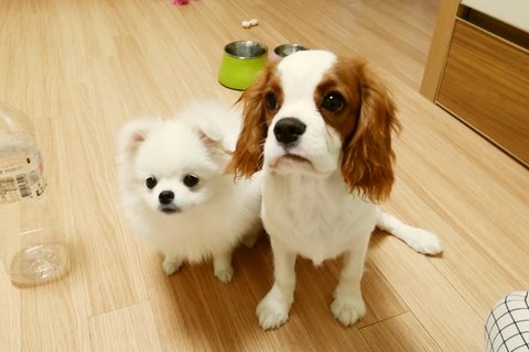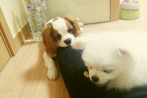 토끼(화이트 포메) 코코(킹찰스스패니얼)입니다.^^