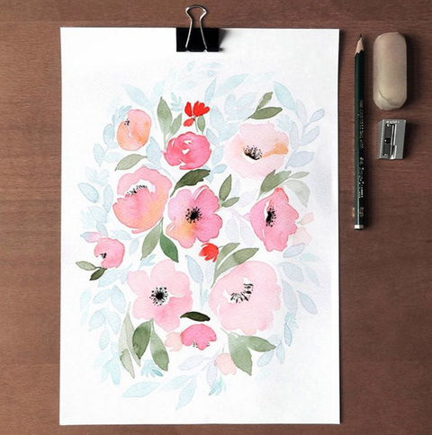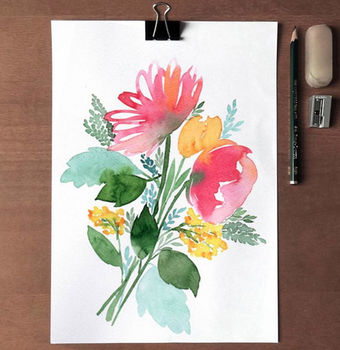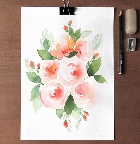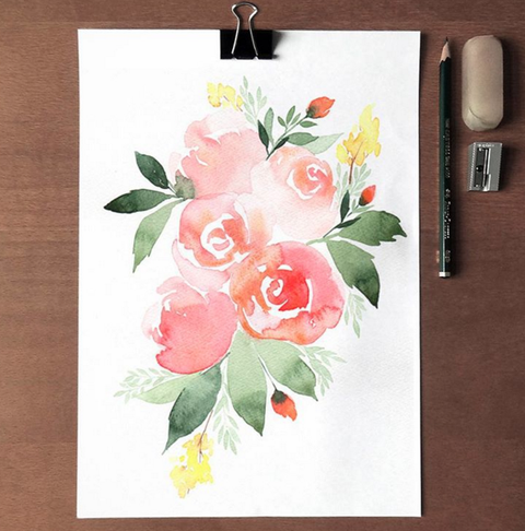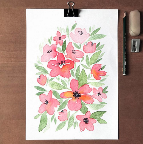 꽃은 수채물감을 사용해서 그려 봤어요.