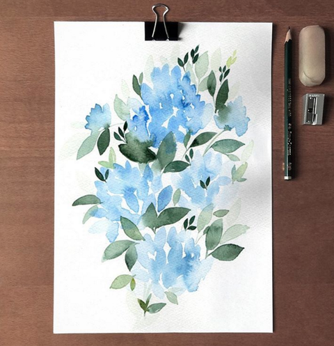 흰 도화지 속 수채화 그림은 제가 직접 그린 그림입니다.