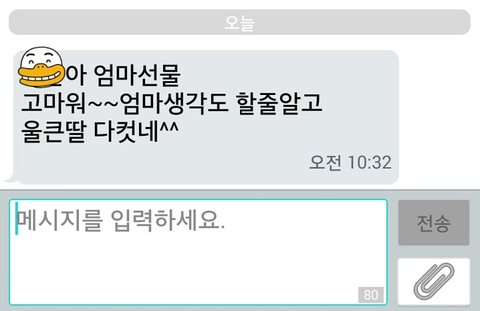 엄마가 오늘 보시고 문자 보내주신 거예요! 실시간 이런 거 처음 올라가보는데 댓글들 다 따땃하고 훈훈해서 감동 받았습니다ㅠㅠㅠㅠ♥♥♥♥