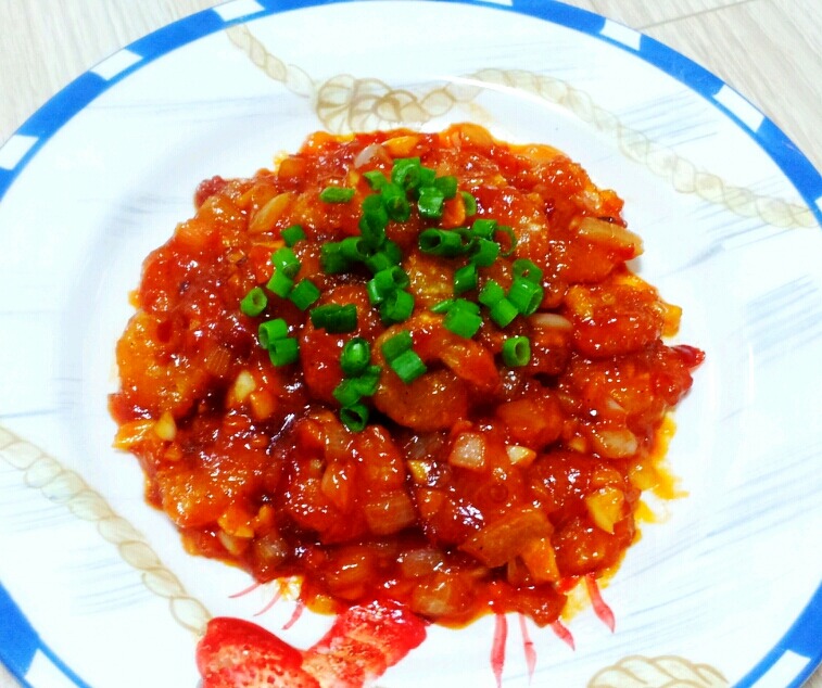 전분,계란 반죽으로 튀긴 새우에다가~ 두반장, 케찹, 설탕, 식초 등등으로 만든 칠리소스와 같이 볶아준