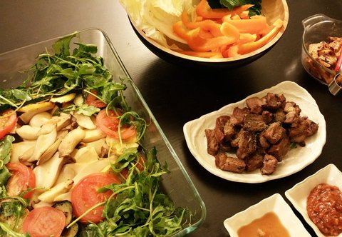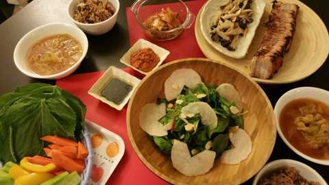 이날도 아이가 보채는 날이어서 목살 후다닥 굽고 오븐에 각종 야채 구워 한상 내었네요.