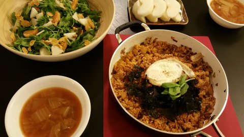 전날 오븐 삼겹살 해먹고 다섯조각? 애매하게 남아서 고기 다져서 김치 잘라 볶아넣고 김치 볶음밥 만들었어요. 역시 고기가 진리..스팸이나 가공육 넣은것 보다 훨씬 맛있었어요. 이것도 느끼하니 배추 된장국과 함께 먹었어요