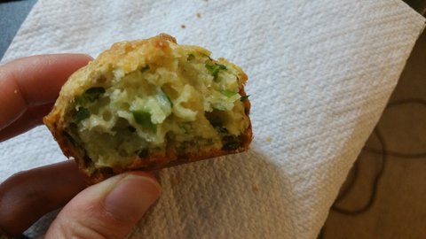 밀가루에 계란 풀고, 우유 부어, 각종 야채, 치즈 등등 을 넣어 오븐에 구우면 크기가 부풀어 포슬포슬한 계란빵? 처럼 되는건데,
