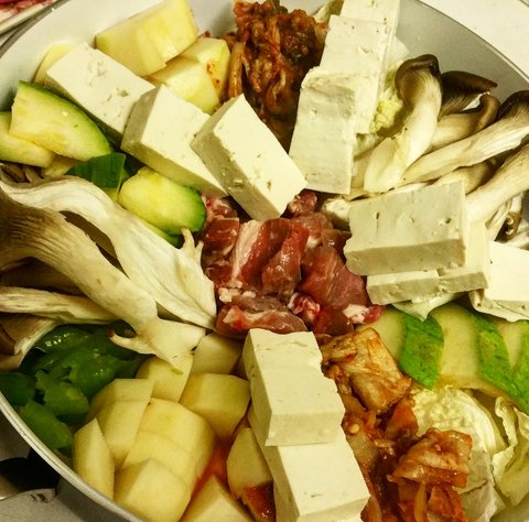 끓이기 전에 찍은 사진이지만 야채파 신랑이 정말정말 좋아하는 찌개! 계란찜 해서 밥 비벼먹으면 최고!