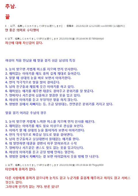 일본여성이 쓴 인기없는 남자특징