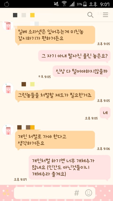 아 그러면 그 놈들을 잡아서 처벌하기 위해서 아내,여자친구, 동생,엄마 등의 모든 여성들이 계속 지속적으로 희생당하야 한다는 말? 저 놈 얼굴에 침 뱉어버리세요 개소리를 뻔뻔하게 하네
