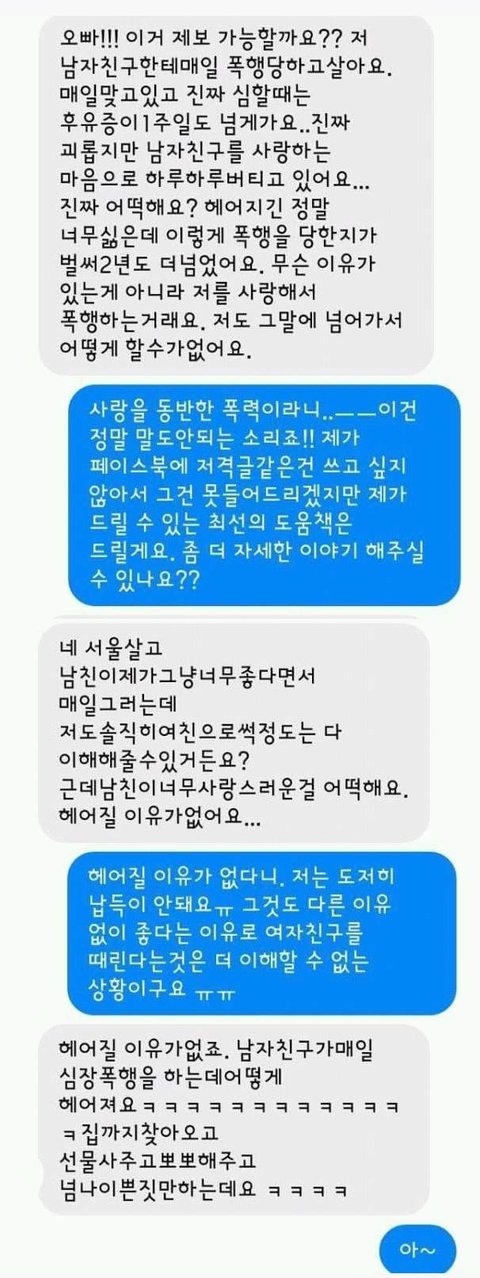 남친한테 폭행당해도 못헤어지겠다는 여자
