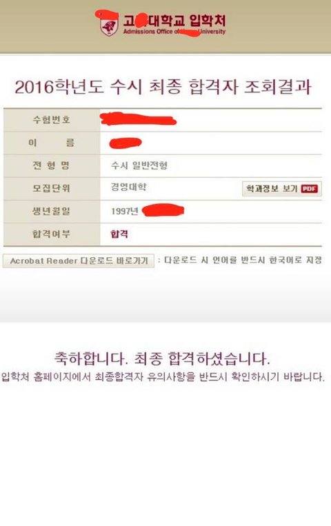 나 고대 붙었어ㅜㅜㅜㅜ (사실 어제 발표된건데 오늘 봄)