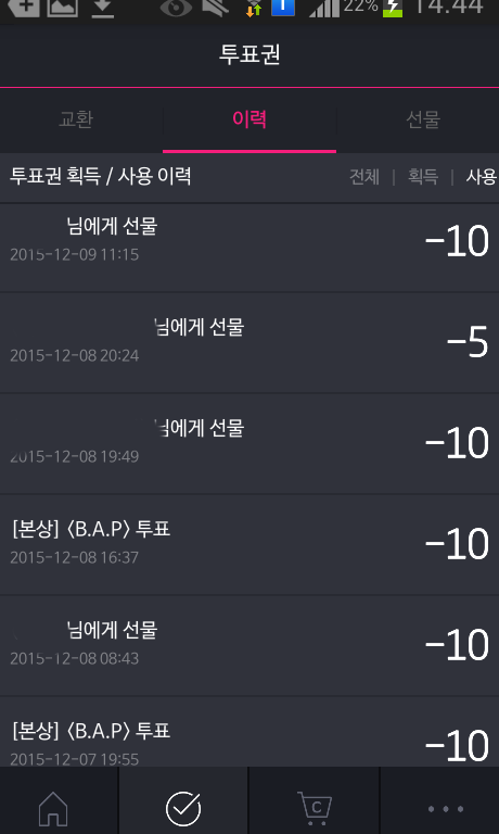 받고 싶은 사람은!! 이거 겁나 치사한거 알지만 허ㅓㅎ헣 서가대에서 비에이피한테 적어도 30장 투표한 이력 캡쳐해서 댓에 메일이랑 달아주면 몇개 보내줄겡, 스밍 몇번 했는지도..! 헿