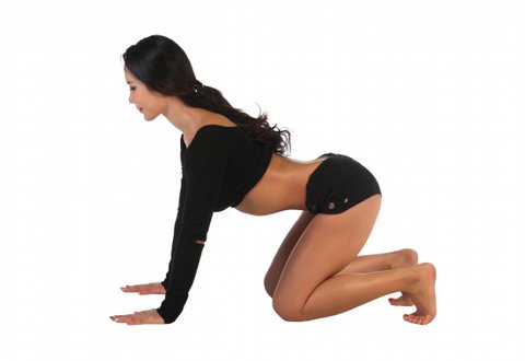 4-매트리스 위에서 발가락이 뒤쪽을 향하도록 무릎을 꿇고 앉아 엉덩이를 들어 윗몸을 세운다. 숨을 내쉬며 윗몸을 내려 엉덩이가 발뒤꿈치 위에 오도록 앉는다. 무릎을 꿇고 앉을 때 엉덩이가 정확히 발뒤꿈치 위에 와야 한다. 무릎에 이상이 있는 경우에는 이 종목을 삼가야 한다.