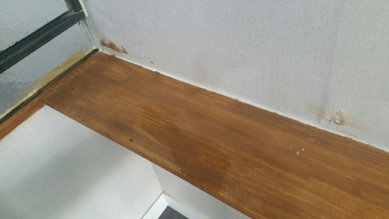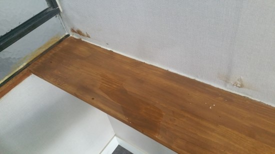 벽에 사포질도, 칠도,바니쉬도 하지 않은 나무선반을 달아놓고 나중에 저렇게 칠해놨네요.