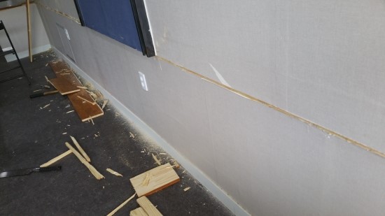 바닥을 다 깔아 둔 상태에서도 작업이 끝나지 않은 현장