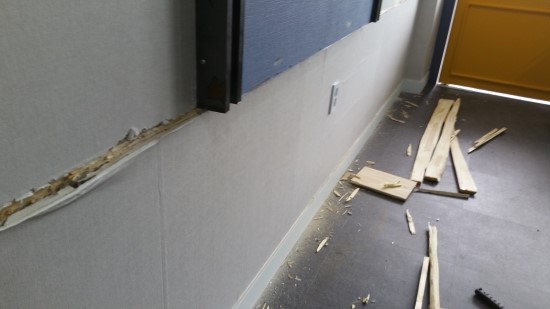 아까 위에 있던 긴 선반을 도저히 사용하지 못하겠어서 뜯어달라고 요청했습니다.
