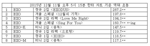 이렇게되면 엑소 음반 1분기2분기4분기 일등..