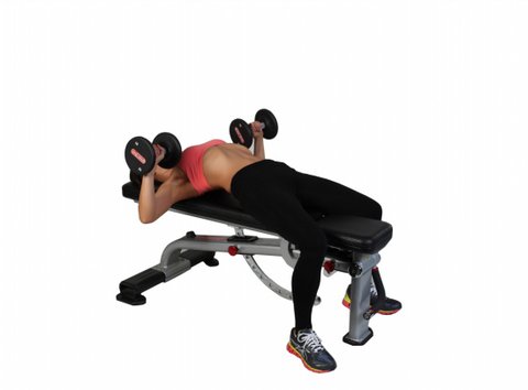 벤치 끝 부분에 앉은 뒤 양손에 잡은 덤벨을 허벅지 위에 올려놓는다. 벤치에 누우면서 덤벨을 가슴 쪽으로 가져간다. 덤벨을 가슴 높이로 잡은 상태에서 양 손바닥이 발 쪽을 향하도록 손목을 돌린다. 숨을 내쉬면서 팔이 충분히 펴질 때까지 덤벨을 힘차게 밀어 올린다.