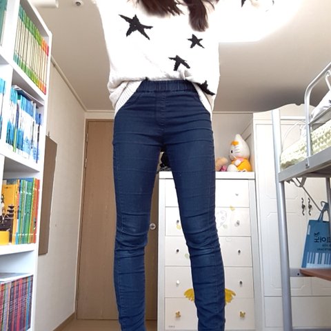 다리가 예뻐서 이상하진 않은데 상의를 그냥 아무것도 없는 흰색 니트로 하면 더 예쁠 것 같아ㅠㅠ다리 부럽당..
