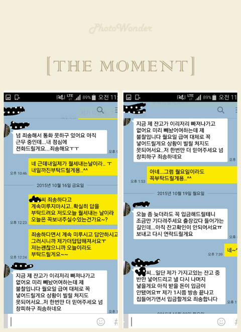 11월16일아침에 짐빼기로했고 나가기전에 더정산하고 나간다더니 지금 30만원밖에없다고함.