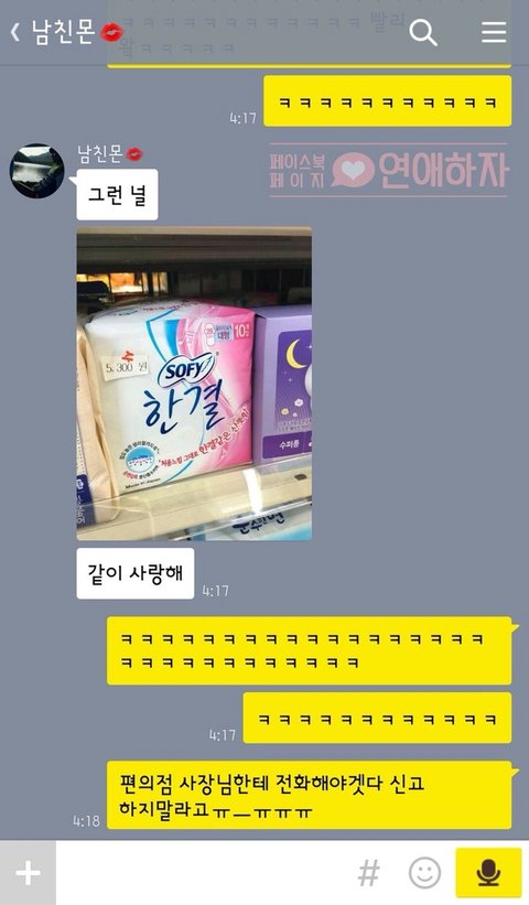 생리대 사러간 남친 카톡ㅋㅋㅋㅋㅋㅋㅋㅋㅋ