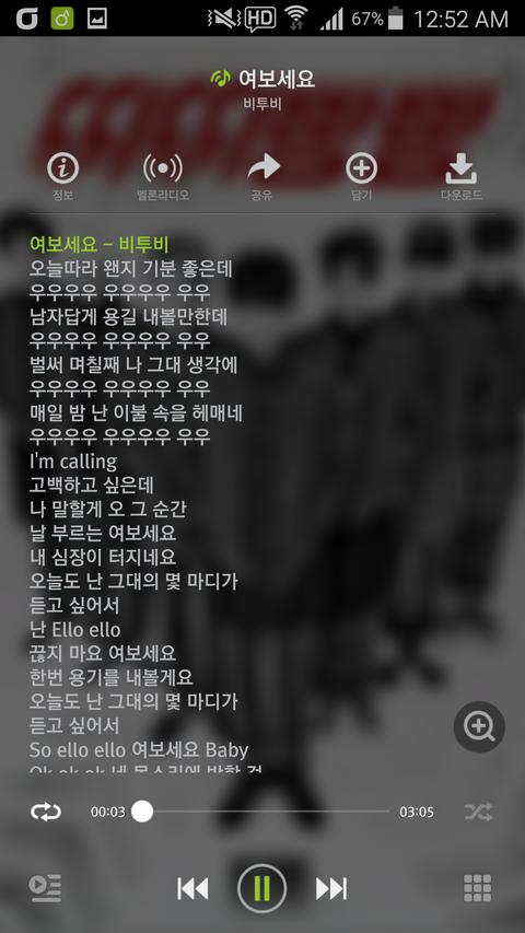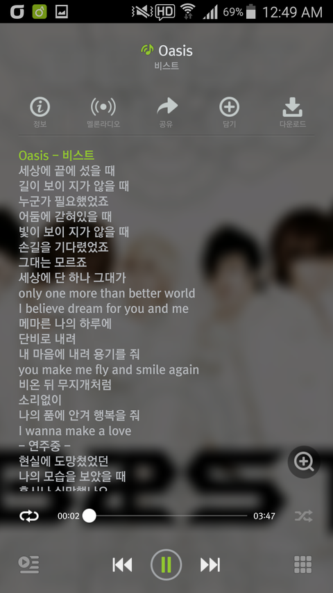 비스트의 데뷔앨범에 수록된 곡인데 비스트는 이미 수록곡이 꿀이라고 소문난 아이돌이지만 정작 주목을 받은 앨범은 2012년 발매한 'Midnight sun'(타이틀곡 아름다운밤이야)부터 2013년 Hard to love, How to love(Shadow), 2014년 Goodluck, Time (12시30분) 그리고 2015년 Ordinary (예이)임.. 하지만 진짜 여러 명곡 사이에서도 이 곡이 제일 좋음.. 중간에 랩퍼가 보컬파트도 하는데 거기도 꿀..