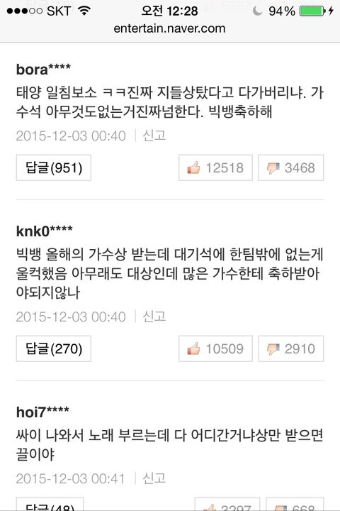 태1양 발언으로 타가수까지 싸잡아 까이는 중 이 기사가 맘마 전체 기사중 조회수 1위 댓수 1위