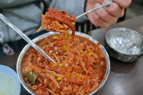 잘 비벼진 밥에 낙지를 투~척