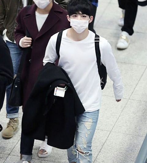깔끔하게 흰티 청바지 근데 마스크쓰는도중에 존잘