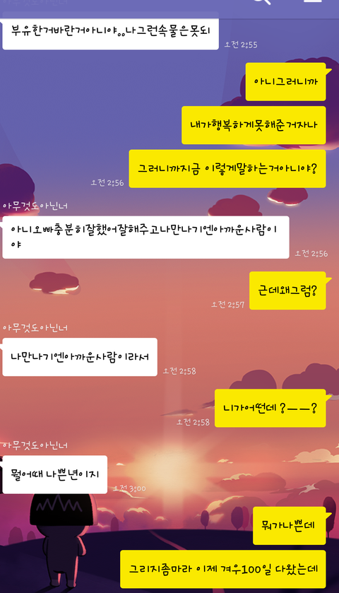 4.나랑헤어지면어떡할꺼냐고 자주물어봣엇음..
