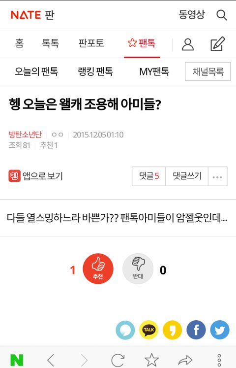 팬톡조용하다고 시무룩한아미ㅋㅋㅋㄱ