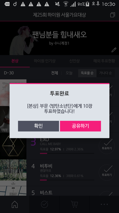 쇼ㅣ챔 다 하고 서가대 투표 중