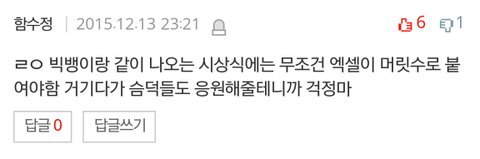 댓글보니까 어떤 함수가 글 써줬는데 머릿수 싸움이랬어 걍 쟤네들이 한 행동 하지말고 이번 시상식 때 엑소도 그렇고 다른 가수 호응해주고 그러면 된다고 함 뒤에서 밀어준다고 그럼... 함수도 빡친게 댓글에 보이던데 시상식때 애들 나오면 함성 크게하고 다른 아이돌 나오면 함성까진 아니어도 응원봉 흔들어주면 자연스레 큰1뷍 애들은 쓰렉되는거니까 이득이지 쟤네도 그러면 할말 없음ㅋㅋ 열심히 응원하자