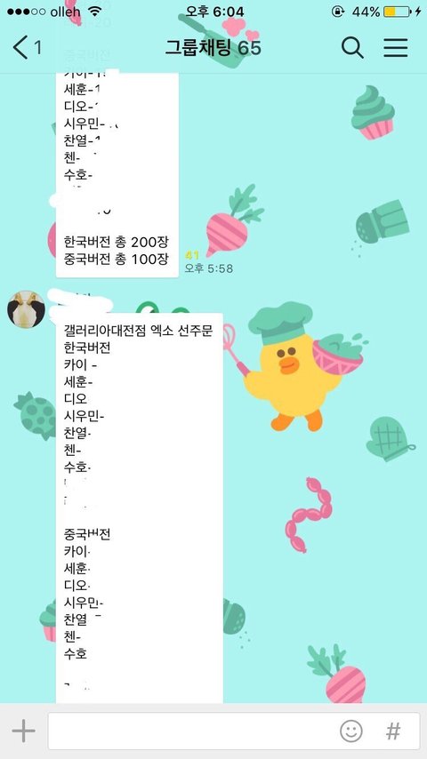 개인자켓이라고 확정 전에 풀린 카톡짤인데멤버별로 있다는건 수량도 다르다는게 첫번째 이유고한국어 200장, 중국어100장이면 9로 나누면 딱 안떨어지는게 두번째 이유임