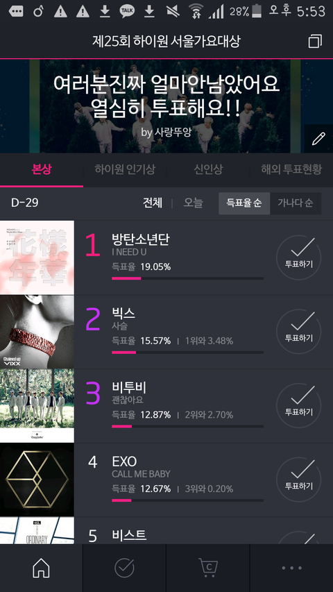 물론 방타니들한테 진짜 상주고 싶은 아미들이야 막 계정 엄청 파고 투표하겠지만...우리 총공시간도 있는데 진짜 투표율이 너무 안 오르는 것 같지 않소...?
