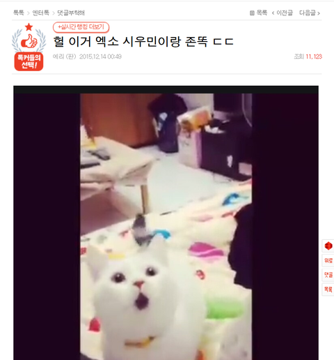 지금 막 봤는데 민석이랑 닮은 냥이 글이야 ㅋ 글이 귀여워서 궁금한 웅녀들 가보라고 링크가져왔어 혹시 시간되는 웅녀들은 미모대박 슈냥이짤이나 소동물과 닮은 짤들 올려주면 좋고