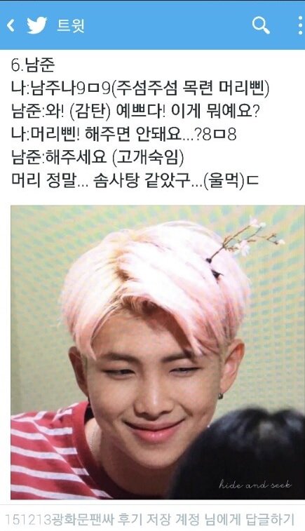 나 방금 김남준 봤거든? 방탄한테 설렌다는게 이런느낌이니? 심장이 쿵하고 떨어지는 느낌?