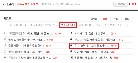 저 말고 직장에서 노처녀 때문에 힘들다는 글은 12월 11일에 쓰여진 글이에요.