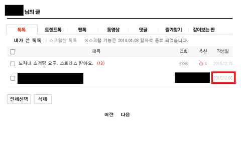 제가 쓴 글 목록 보여드립니다.