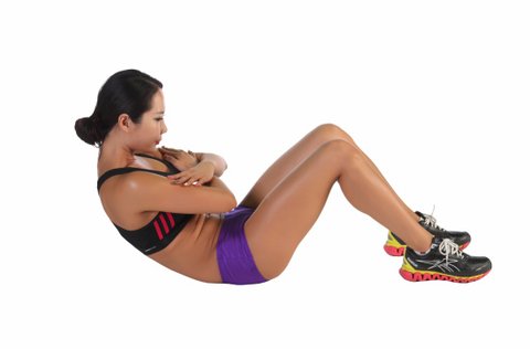 바닥에 누워 발뒤꿈치를 엉덩이 가까이 끌어당기고 무릎을 세운다. 양팔은 가슴 앞에서 편안히 교차시킨다. 숨을 내쉬면서 상체를 끌어 올려 복근을 수축시킨다. 다시 숨을 들이 쉬면서 어깨가 바닥에 거의 닿을 때까지 상체를 내린다.