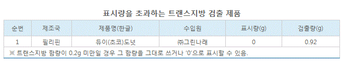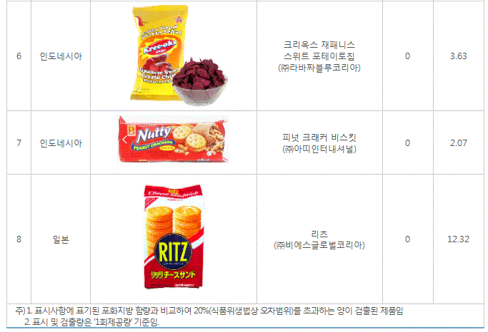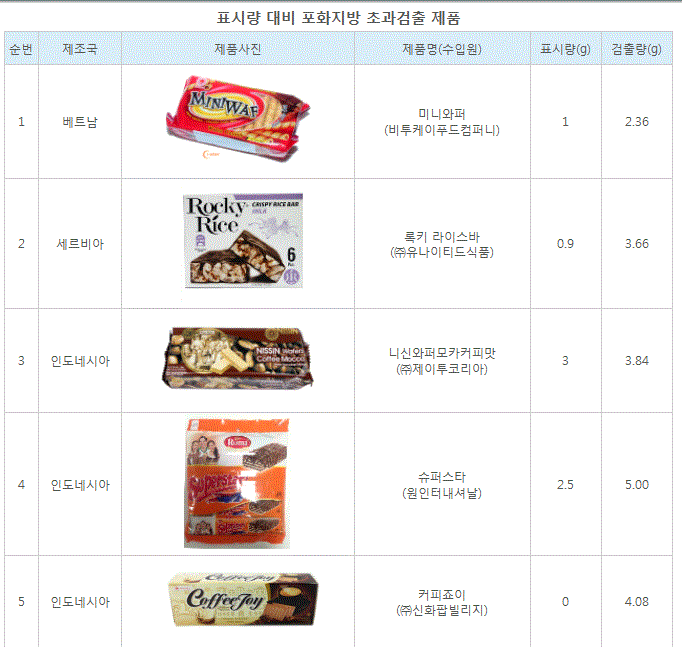 포화, 트랜스지방이 제품에 표기된 함량을 초과하는 것으로 나타났습니다