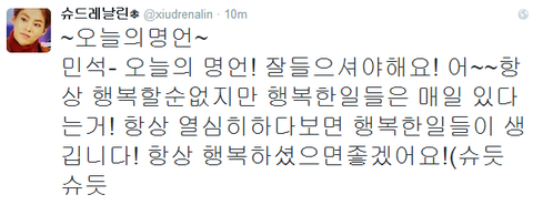 (오늘 어떤 웅녀가 민석이때문에 행복하다고 글쓴거 봤는데 민석이가 행복에 관한 명언을 해줬어 ㅠㅠ