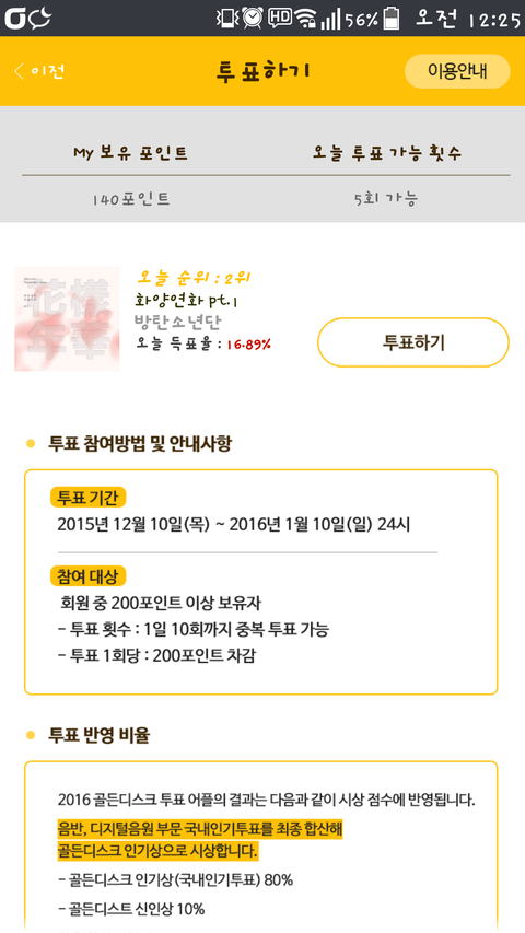 골디투표 5회하고 5회남은거.현금결제충전함.