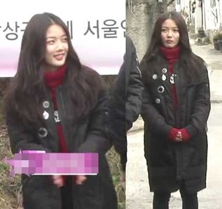 추운 날씨 속에서 유콜미엑스 패딩 입고